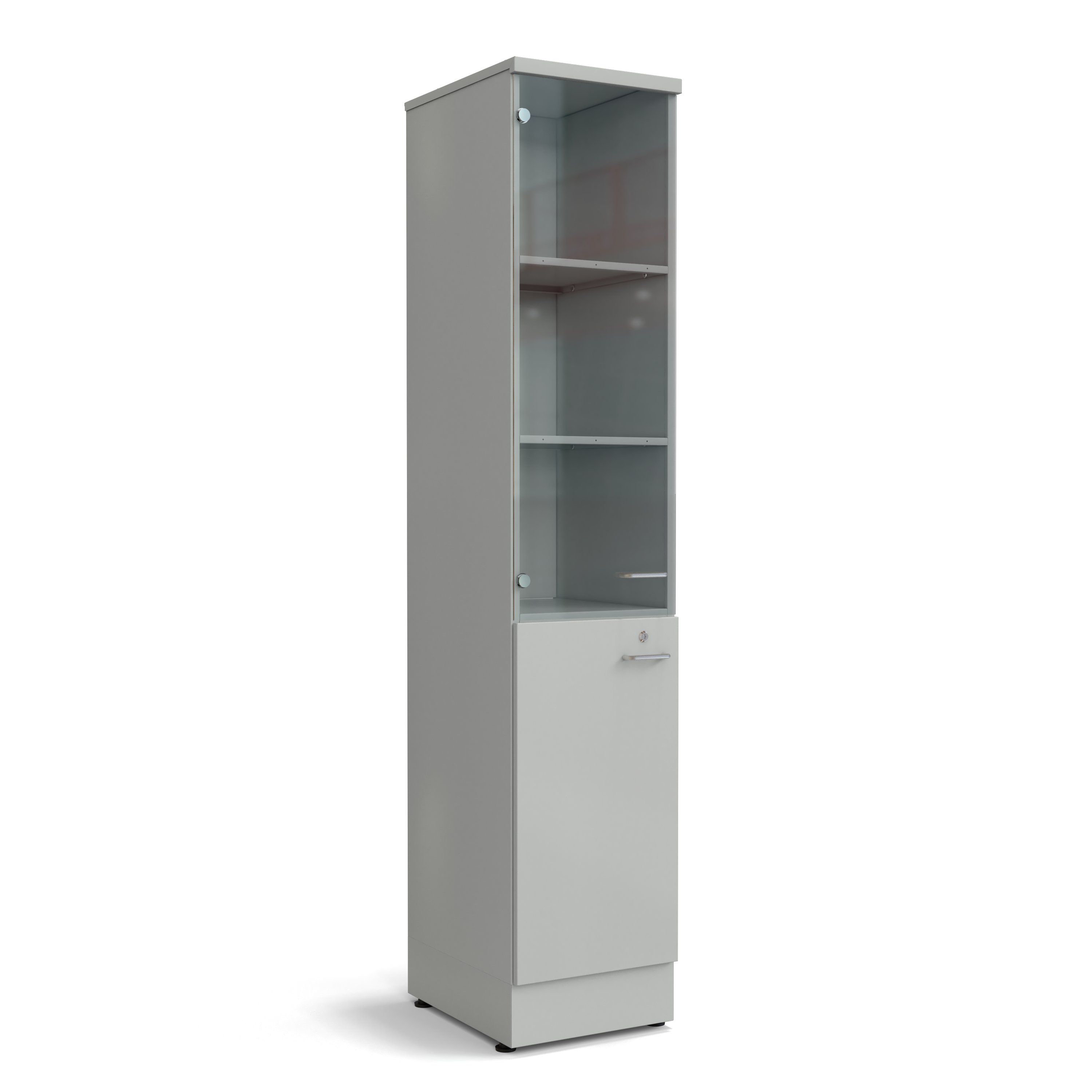 • В нижнее отделение шкафа устанавливается одна съемная полка, в верхнее - две съемные полки;