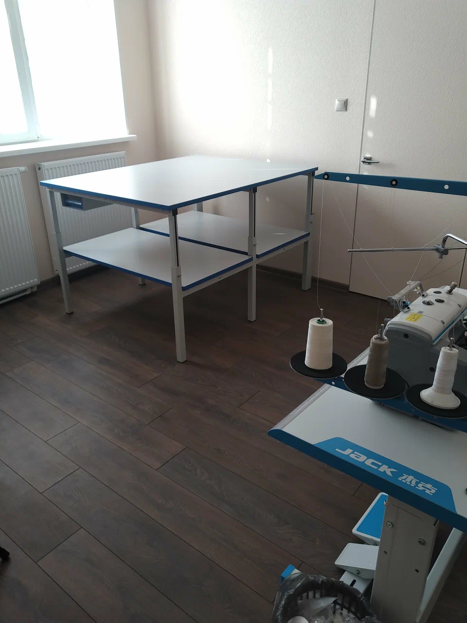 Для хранения и размещения рулонных материалов предусмотрена нижняя полка во всю ширину стола. Раскройный стол СР легко выдерживает нагрузку в 300 кг. Конструкция стола СР имеет регулировку высоты столешницы 650-950 мм., что позволяет установить её на любую удобную Вам высоту, а в последствии , если это необходимо, легко поменять. Столешница и полка изготовлены из ЛДСП толщиной 25 мм. Все рабочие места Gresson серии СР могут быть оборудованы регулируемыми опорами, что позволит нивелировать неровность пола и при необходимости увеличить высоту стола.