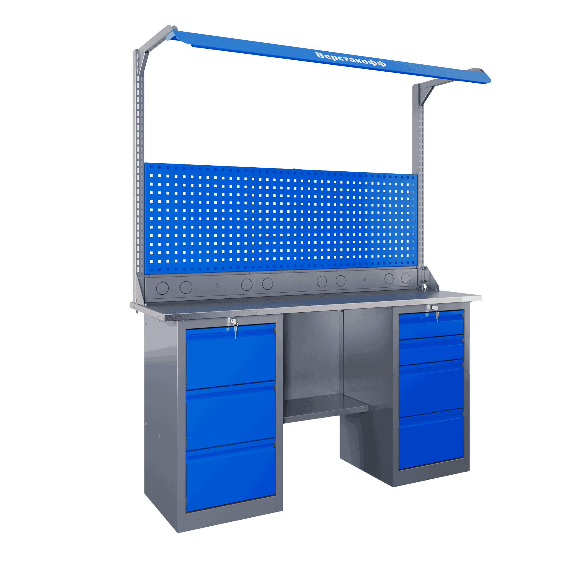 Самые компактные верстаки с глубиной столешницы 500 мм. Благодаря небольшой глубине, такие верстаки легко размещаются в ограниченных пространствах, например, в гаражах, мастерских и тд. Несмотря на компактные размеры, верстаки могут быть оснащены полками, ящиками и держателями для инструментов, что помогает поддерживать порядок и быстро находить нужные предметы.