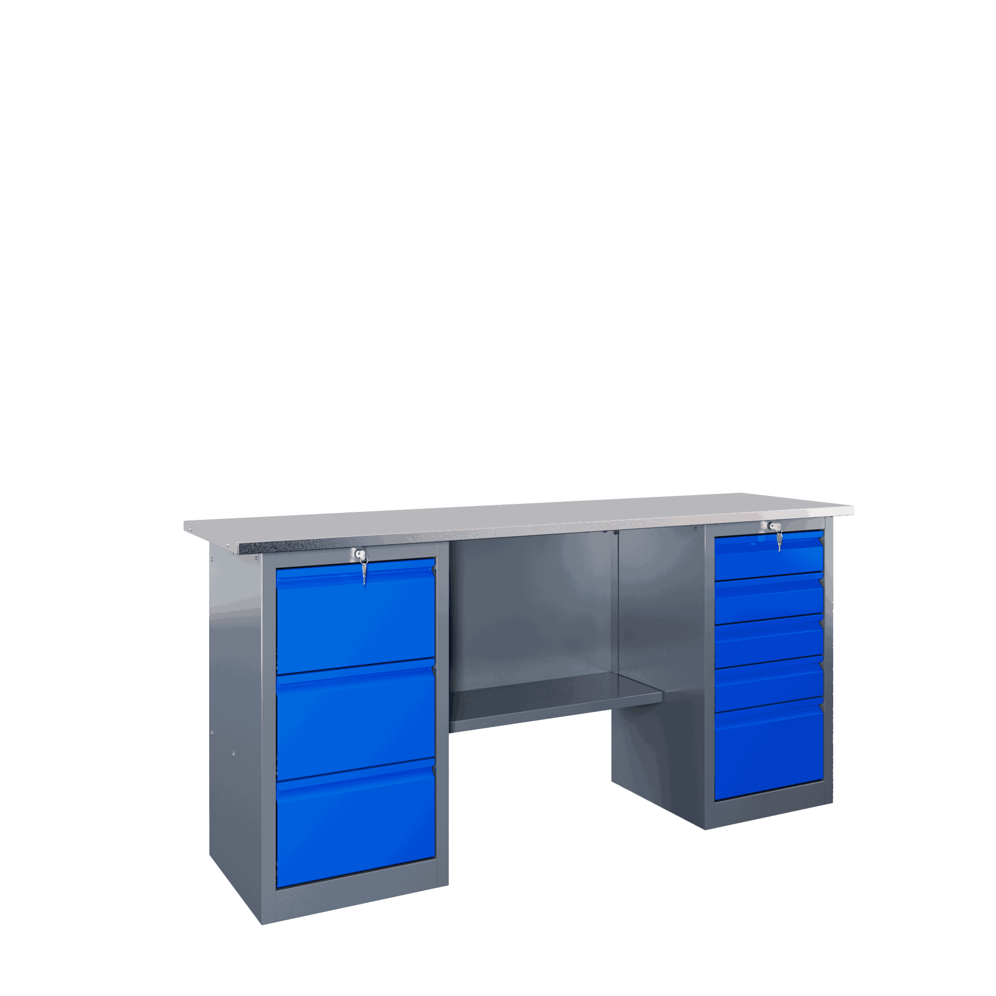 Самые компактные верстаки с глубиной столешницы 500 мм. Благодаря небольшой глубине, такие верстаки легко размещаются в ограниченных пространствах, например, в гаражах, мастерских и тд. Несмотря на компактные размеры, верстаки могут быть оснащены полками, ящиками и держателями для инструментов, что помогает поддерживать порядок и быстро находить нужные предметы.
